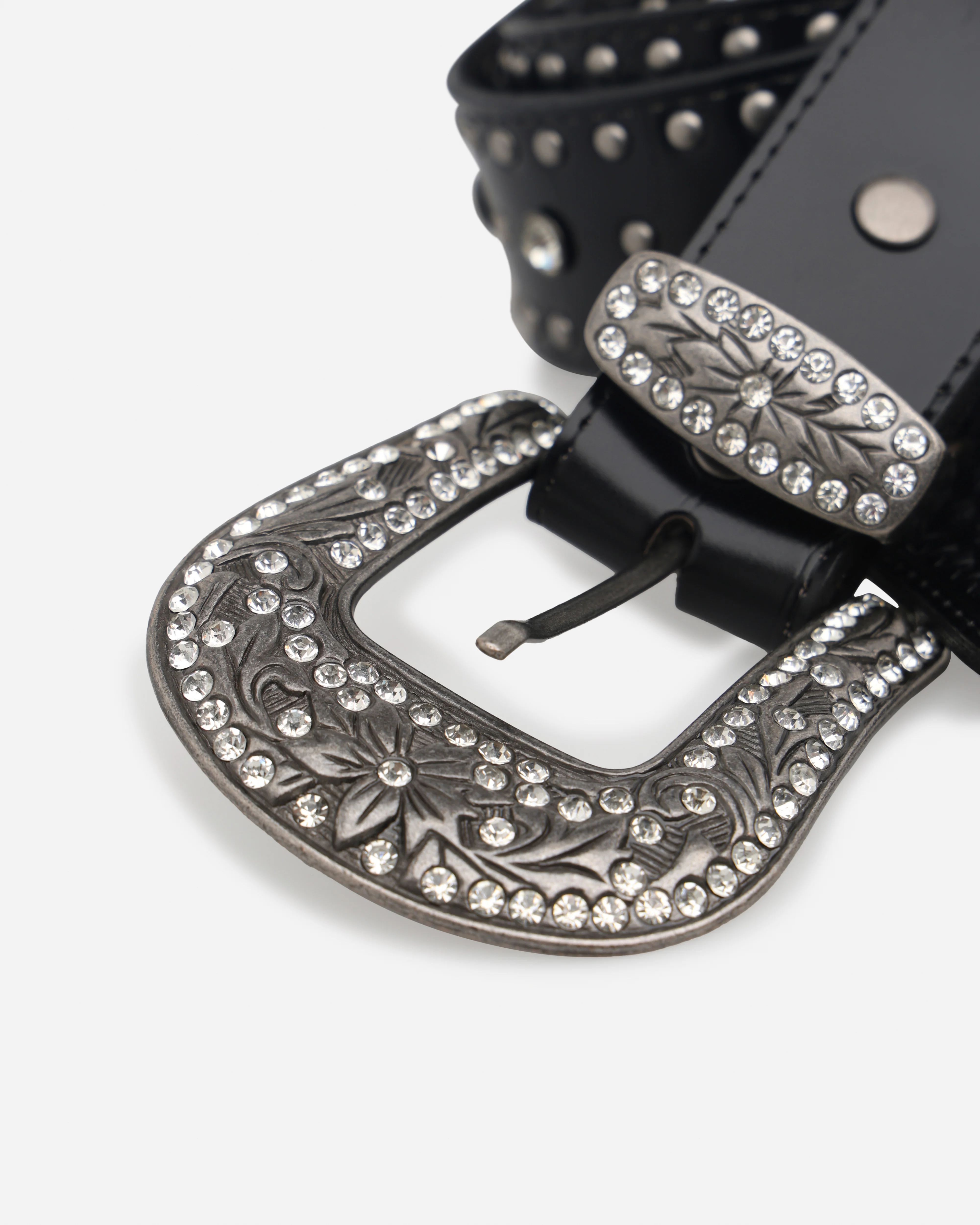 The Metal Cross Studded Belt is made from black leather and features intricate Western design motifs on the metal buckle and loop, with cross and stud embellishments throughout. Cop yours today at Culture Kings.